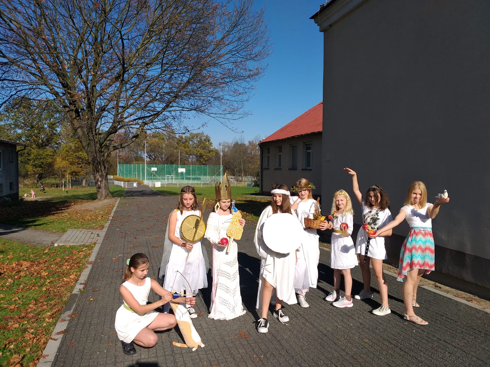 Świat nauki jest zgodny: spontaniczna zabawa to wielka wartość. Dlatego też, w naszej szkole często organizujemy różne ciekawe lekcje, które angażują wychowanków w edukacyjną zabawę, dostosowaną do ich aktualnych potrzeb. Jedną z takich inicjatyw była mitologiczna lekcja historii czyli prezentacja wybranych przez uczniów bogów greckich. Tradycyjnie co roku organizowany jest taki festiwal, podczas którego uczniowie z klasy piątej wykonują kostiumy, atrybuty oraz opowiadają o wybranym przez siebie bogu greckim. Również w tym roku klasa 5 zaprezentowała się wyśmienicie. Było mnóstwo Zeusów, Aresów, Aten, Afrodyt. Nie zabrakło także tych mniej znanych jak chociażby Demeter, Artemidy czy Hefajstosa. Było dużo dobrego humoru. Uczniowie wyglądali na zadowolonych i spełnionych. Bowiem na mądrą zabawę nigdy nie jest za późno.