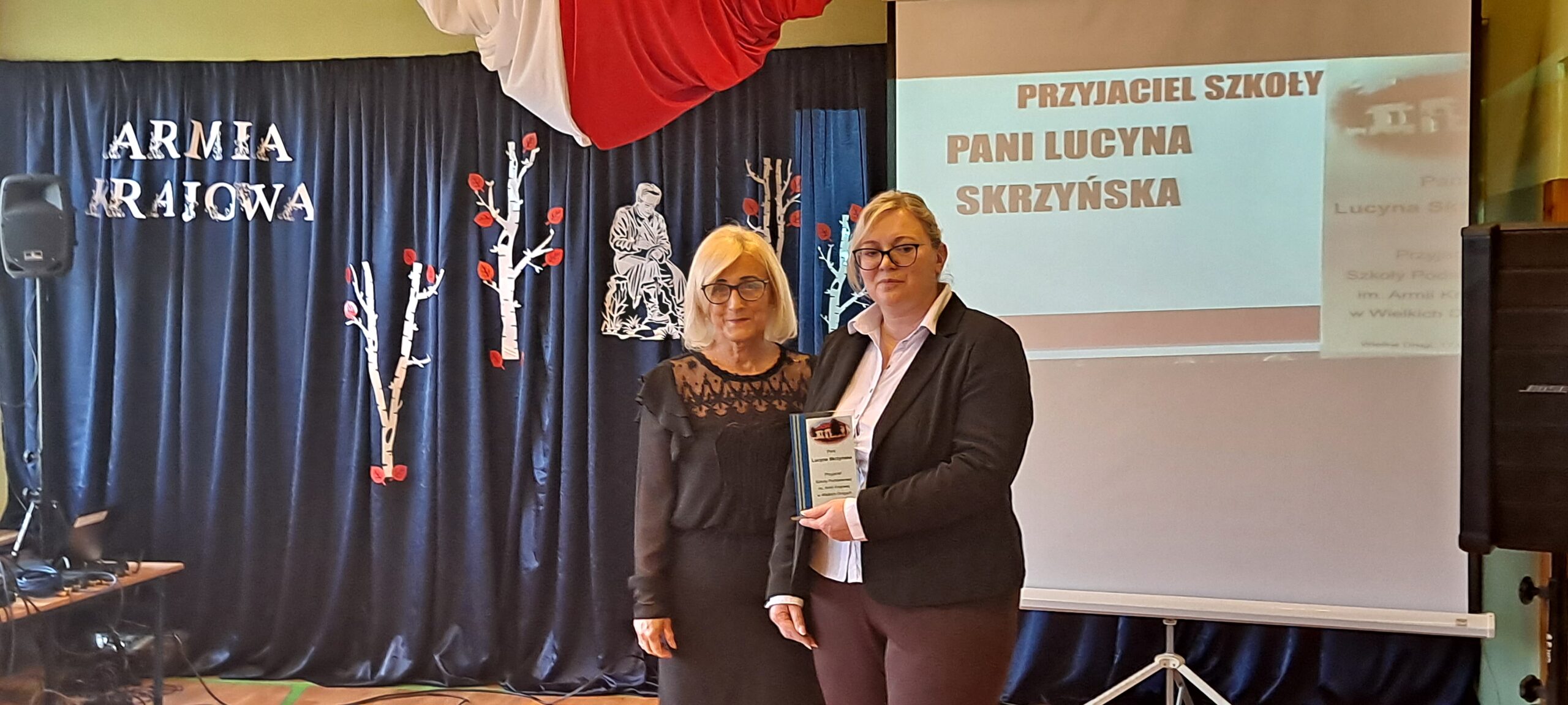 Tradycyjnie już w tym szczególnym dla naszej szkolnej społeczności dniu przyznawany jest tytuł Przyjaciela Szkoły. Pani Dyrektor Joanna Chodor w imieniu uczniów i nauczycieli wręcza dyplom i pamiątkową statuetkę, które mają wyrazić wdzięczność i uznanie. W tym roku to zaszczytne miano otrzymała Pani Lucyna Skrzyńska, przewodnicząca Rady Rodziców. Jesteśmy jej niezwykle wdzięczni za serce, które ma zawsze otwarte dla wszystkich, za czas poświęcany szkole, jej problemom i radościom, za wysiłki na rzecz polepszenia warunków nauki i pracy, za chęć nieustającej pomocy, za życzliwość i troskę, za wszystkie pomysły i ich realizację, za to, że nie ma dla niej rzeczy niemożliwych. Dziękujemy.